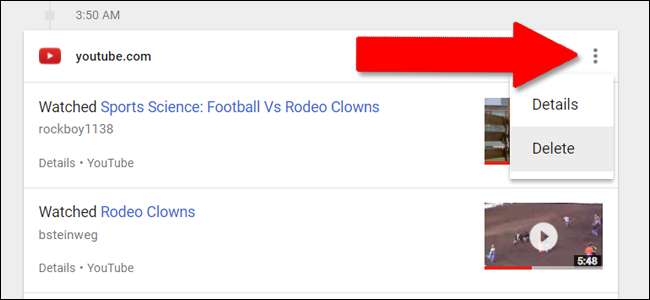 Dacă doriți să ștergeți un singur lucru, lăsând intact restul istoricului dvs. Google, reveniți la pagina Activitatea mea pe Google, myactivity.google.com .