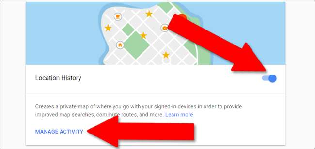 Istoricul pentru fiecare dintre ele poate fi activat sau dezactivat făcând clic pe comutarea albastră de sub imaginea antetului. Faceți clic pe „Gestionați” și veți fi direcționat către o altă pagină ... care, din păcate, este o pagină diferită pentru fiecare serviciu.