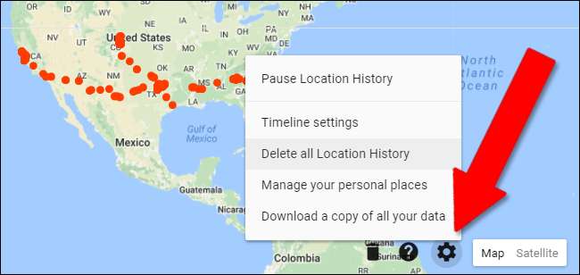 Pentru Istoricul locațiilor, sunteți condus la pagina de mai jos. Faceți clic pe pictograma de setări (sigla roată) din colțul din dreapta jos, apoi pe „Ștergeți tot Istoricul locațiilor”. De asemenea, puteți să întrerupeți istoricul locațiilor cu acest meniu.