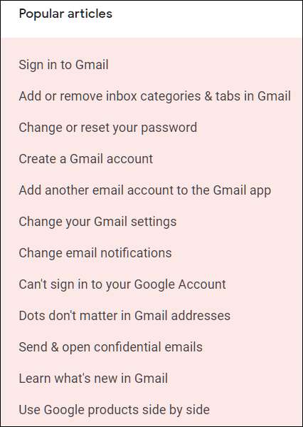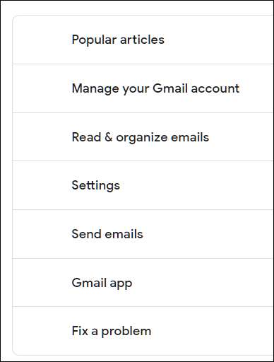 Utilizarea ajutorului Gmail pentru subiecte generale de asistență
