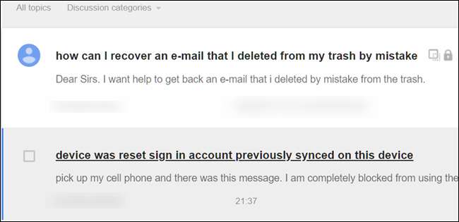 Următoarea opțiune este să vă îndreptați către forumuri, unde oamenii merg să pună întrebări specifice despre problemele legate de conturile Gmail. Forumul este populat cu alți utilizatori Gmail, precum și cu membri ai personalului Google.