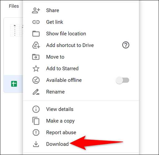Faceți clic dreapta pe Fișa Google și selectați "Descărcați" din meniu.