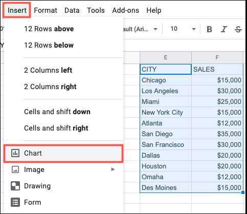 Apoi, faceți clic pe Insert & Gt; Diagramă din meniul de sus.