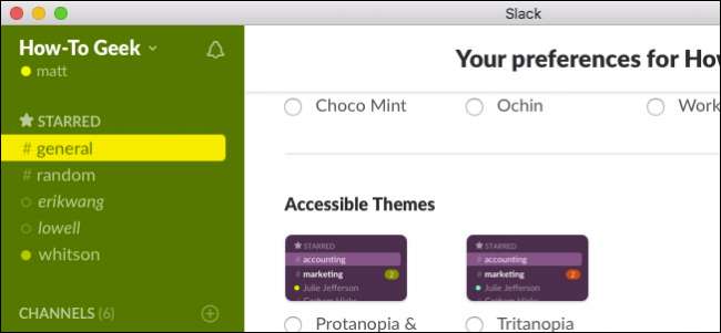 În mod implicit, Slack apare în tema sa implicită, „Vinete”, care este curată și simplă, dar este puțin probabil să mulțumească pe toată lumea.