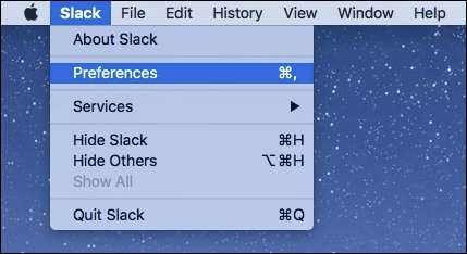 În aplicația Mac, faceți clic pe meniul Slack și selectați Preferințe (Comandă + virgulă).