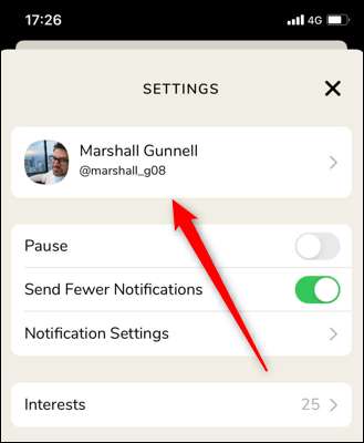 Acum veți fi în meniul Setări. Atingeți numele dvs. în partea de sus a ecranului.