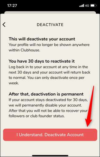 Cand tu dezactivați Contul dvs. Clubhouse, contul dvs. este eliminat din ochiul public, dar aplicația vă păstrează încă datele dvs. de utilizator și vă puteți reactiva contul în termen de 30 de zile prin pur și simplu conectați-vă înapoi. După perioada de grație de 30 de zile, clubhouse va fi atunci Dezactivați contul tău. Un cont dezactivat înseamnă că pierdeți permanent accesul la contul dvs. și la informațiile sale și nu vă mai puteți mai conecta la contul dvs. Clubhouse are "dreptul" de a-ți păstra datele de utilizator, totuși.