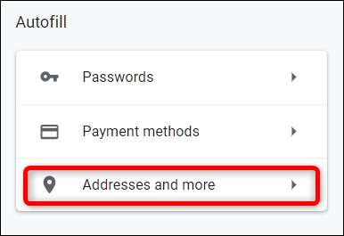 Derulați în jos până când vedeți secțiunea Completare automată și faceți clic pe „Adrese și altele”.
