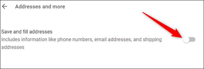 Dezactivați comutatorul de lângă „Salvați și completați adresele”.