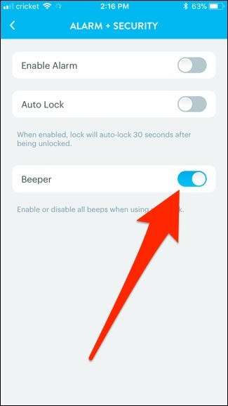 Atingeți comutatorul de comutare din dreapta „Beeper” pentru a-l dezactiva.