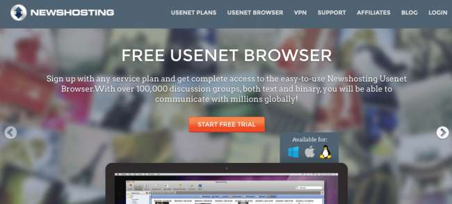 - NewsHosting : Acești tipi sunt cei mai buni din afaceri. Acestea oferă 2536 de zile de păstrare, până la 60 de conexiuni simultan, un VPN gratuit inclus cu abonamentul dvs., criptare completă pentru toate conexiunile și sunt mai ieftine decât majoritatea celorlalți furnizori de nivel 1. Au chiar și un browser Usenet gratuit, astfel încât să puteți găsi cu ușurință lucruri fără a fi nevoie să folosiți o aplicație ciudată. Și, desigur, au o perioadă de încercare gratuită.