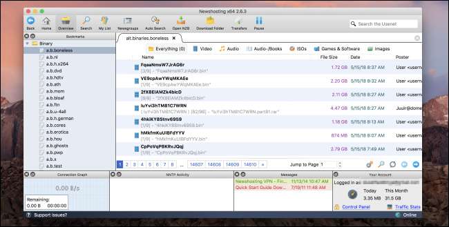 O ultimă notă despre Usenet înainte de a continua : Usenet poate fi folosit pentru a descărca tot felul de lucruri și vă spunem pur și simplu cum funcționează. Legalitatea anumitor materiale de pe Usenet va varia în funcție de țară, dar cel mai mare lucru pe care trebuie să-l știți este că nu ar trebui niciodată încărcați orice material protejat prin drepturi de autor către Usenet. Acest lucru este, în general, ilegal peste tot, așa că nu o faceți.