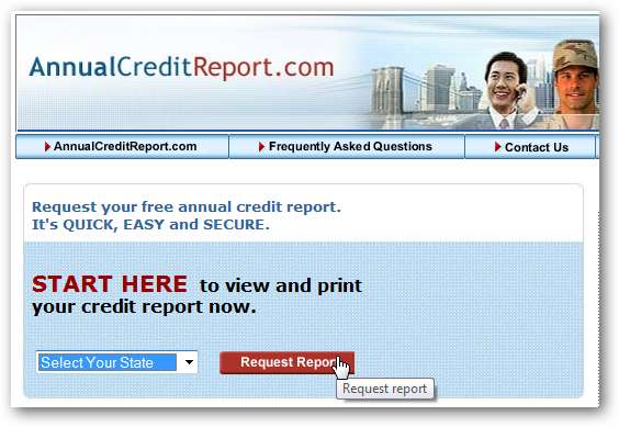 Când accesați AnnualCreditReport.com, selectați starea în care vă aflați în prezent și faceți clic pe Solicitare raport.