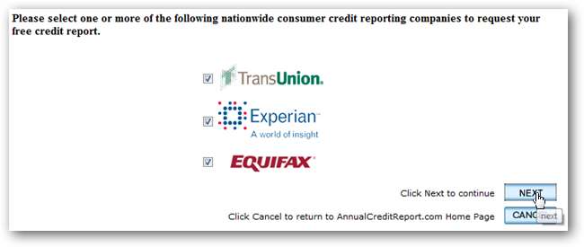 Când vi se solicită birourile de credit, selectați-le pe toate și faceți clic pe Următorul.