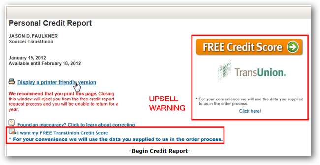 Per ansamblu, procesul este destul de intuitiv, totuși, pe măsură ce navigați prin fiecare dintre agențiile de credit, vi se prezintă linkuri de vânzare pentru a achiziționa fie scorul dvs. de credit, fie monitorizarea creditului. Pe măsură ce parcurgem site-urile, vom evidenția zonele care încearcă să vă vândă către aceste servicii (non-gratuite).