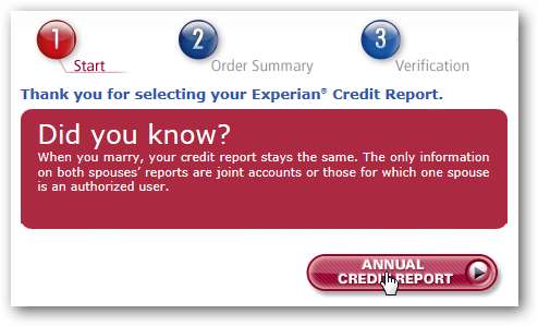 Când sunteți transferat înapoi la AnnualCreditReport.com, Experian este următorul pe listă. Faceți clic pe Următorul.