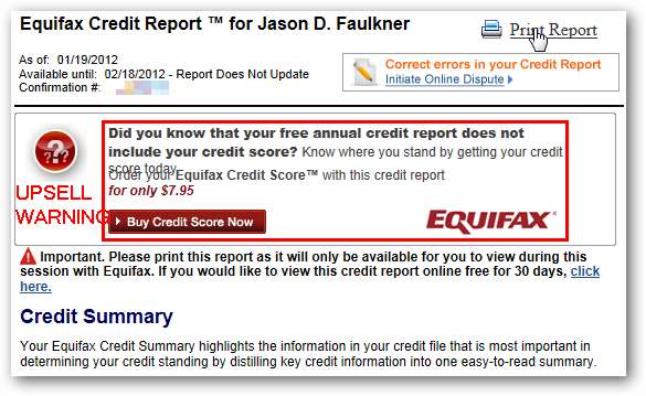 Notă: există o opțiune de a crea un cont, precum și un link de vânzare pentru scorul de credit și monitorizare. Din nou, rețineți că este numai pentru Equifax.