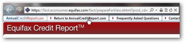 După ce ați salvat raportul dvs. de credit, faceți clic pe linkul Reveniți la AnnualCreditReport.com din partea de sus.