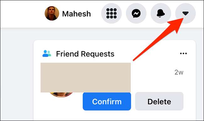 Pe site-ul Facebook, în colțul din dreapta sus, faceți clic pe pictograma săgeată în jos.