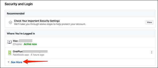 Pe pagina "Security and Login" care se deschide, din secțiunea "Unde vi se conecționează", faceți clic pe opțiunea "Vedeți mai multe".