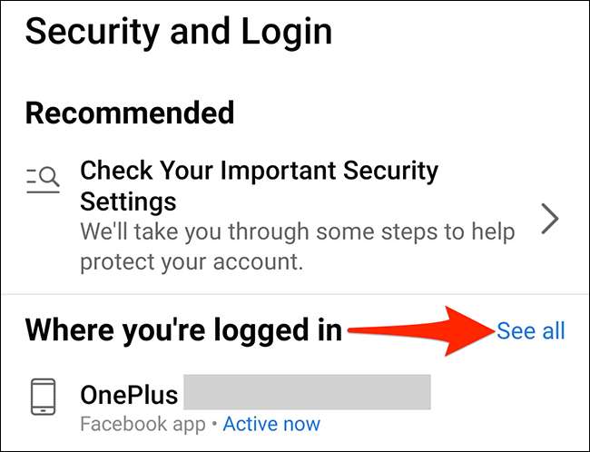Pe pagina "Security and Login", lângă antetul "Unde vă conectați", apăsați "Vezi totul".