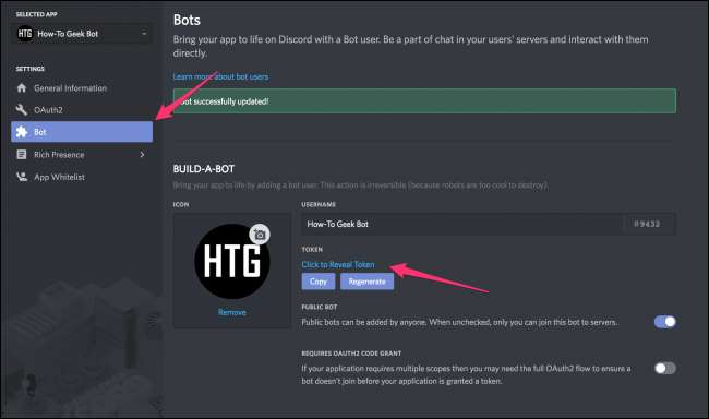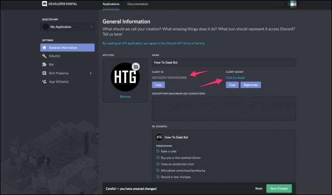 Veți dori să faceți o notă a ID-ului și a secretului clientului (pe care ar trebui să îl păstrați secret, desigur). Cu toate acestea, acesta nu este robotul, ci doar „Aplicația”. Va trebui să adăugați botul în fila „Bot”.