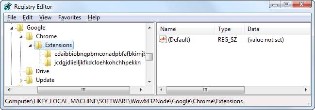 HKEY_LOCAL_MACHINE \ Software \ Google \ Chrome \ Extensions (Pe versiunile Windows pe 32 de biți)