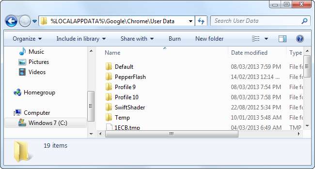 Pentru a deschide folderul de date de utilizator Chrome, introduceți următoarele în bara de adrese a Windows Explorer: