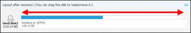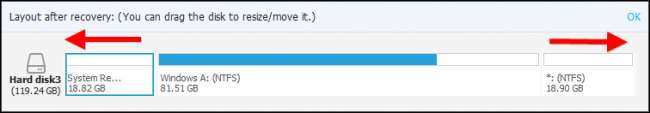 Pentru a redimensiona aceste partiții, selectați mai întâi una, apoi trageți mânerele care apar între partiții, de parcă ați redimensiona o fereastră File Explorer.