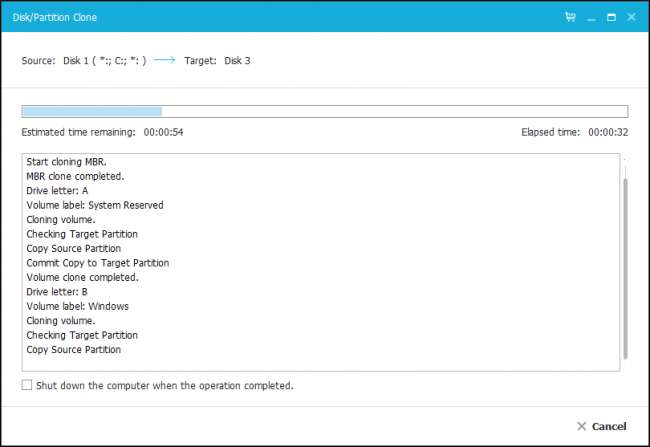 Durata reală a operației va depinde de cât de mare este unitatea sursă, precum și de viteza suporturilor de stocare și a computerului. Pentru noi a durat aproximativ 10 minute.
