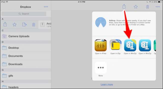 Indiferent de aplicația pe care o utilizați, dacă nu doriți să plătiți pentru versiunile complete, va trebui mai întâi să exportați fișierul zip pe dispozitivul dvs. iOS și apoi să utilizați aplicația zip gratuită pentru a gestiona fișierul.