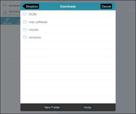 Dacă acesta este doar prea mulți pași, atunci puteți achiziționa versiuni complete ale oricărei aplicații zip și puteți conecta serviciul cloud direct, printre multe alte caracteristici. Versiunea completă WinZip, de exemplu, are suport pentru Dropbox, Google Drive, OneDrive și iCloud, în timp ce iZip Pro are suport pentru iCloud, Dropbox, Box și Google Drive.