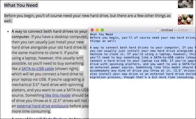 Există de fapt câteva modalități de a copia și lipi text fără formatare. Mulți oameni copiază textul în cauză, îl lipesc într-un document TextEdit gol, apoi copiază textul simplu de acolo și îl lipesc în documentul țintă.