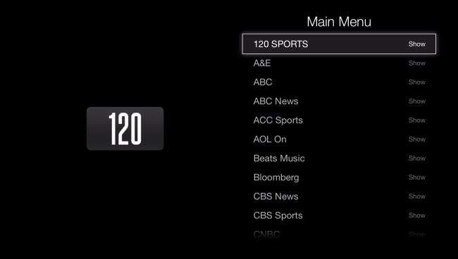 Pe ecranul următor, veți vedea toate canalele pe care le puteți „Arăta” sau „Ascunde” în meniul principal al Apple TV.