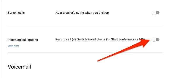 Derulați în jos până când vedeți „Opțiuni de apel primit”. Apăsați comutatorul de comutare la dreapta pentru a-l activa. Ești pregătit să înregistrezi!