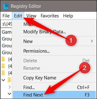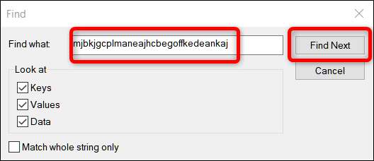 Faceți clic pe „Editați”, apoi „Găsiți în continuare” pentru a localiza orice alte intrări de registru care conțin ID-ul extensiei și apoi ștergeți-le și pe acestea.
