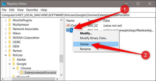 Cele două chei principale pe care doriți să le căutați se vor termina în „ExtensionInstallForcelist” și, de obicei, le veți găsi în următoarele locații: