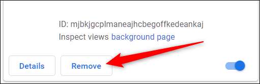 și faceți clic pe butonul „Eliminați” din extensia pe care doriți să o eliminați.