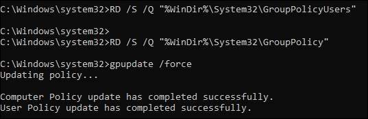 RD / S / Q "% WinDir% \ System32 \ GroupPolicyUsers" RD / S / Q "% WinDir% \ System32 \ GroupPolicy"