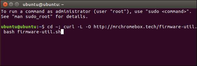 Această comandă se modifică în directorul de acasă, descarcă fișierul http://mrchromebox.tech/firmware-util.sh fișier script și îl rulează cu privilegii root. Consultați site-ul web al dezvoltatorului pentru mai multe documentații despre modul în care funcționează scriptul .