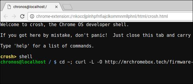 cd ~; curl -L -O http://mrchromebox.tech/firmware-util.sh; sudo bash firmware-util.sh