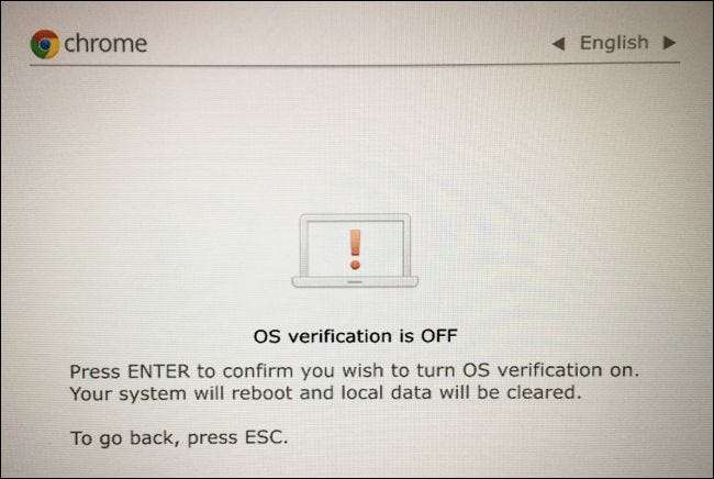Chromebookul își va șterge unitățile interne și va reactiva verificarea sistemului de operare, ceea ce vă împiedică (sau malware) să modificați partiția de sistem și fișierele sistemului de operare. De asemenea, nu va trebui să apăsați Ctrl + D de fiecare dată când porniți.