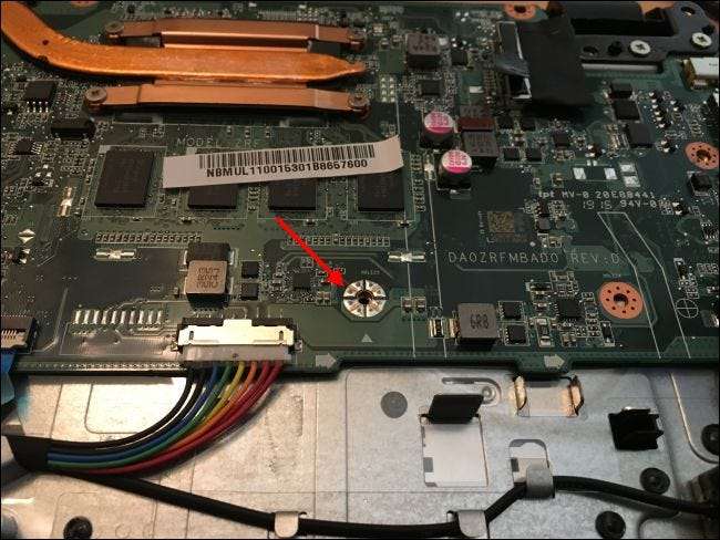 Localizați orificiul de șurub de care ați deșurubat șurubul de protecție la scriere BIOS de anterior. Luați exact același șurub pe care l-ați deșurubat mai devreme și înșurubați-l înapoi în gaură.