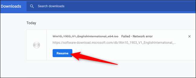 În lista de descărcări, găsiți elementul eșuat și faceți clic pe „Reluare”.