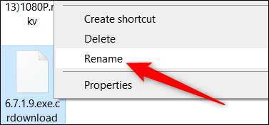 Eliminați extensia „.crdownload” de la sfârșitul fișierului și apăsați tasta Enter.
