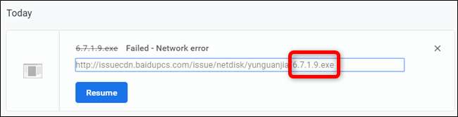 Apăsați tasta Enter și, dacă serverul o permite, fișierul va fi reluat de unde a rămas în Chrome. În caz contrar, descărcarea va începe din nou de la început.