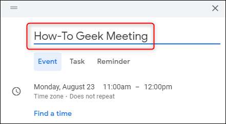 Va apărea o fereastră pop-up. În primul rând, faceți clic pe caseta de text "Adăugați titlul" și dați evenimentului dvs. un titlu.