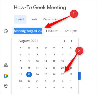 Apoi, stabiliți data întâlnirii făcând clic pe data stabilită în prezent și apoi alegeți o nouă dată din calendarul care apare. De exemplu, pentru a alege 27 august, ați face clic pe "27" în calendar. Puteți schimba luna care este afișată făcând clic pe săgeata din stânga sau dreapta din colțul din dreapta sus al calendarului.