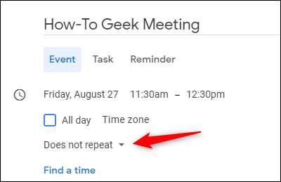 Dacă aceasta este o întâlnire recurentă, puteți alege frecvența la care ar trebui să se desfășoare întâlnirea. Faceți clic pe săgeata în jos de lângă "Nu repetați".