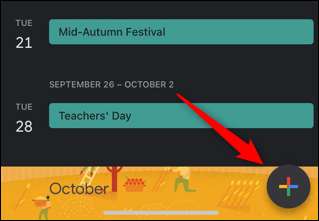 Pentru a programa o întâlnire de întâlnire Google utilizând telefonul smartphone, va trebui să instalați aplicația Google Calendar Android sau ios. . Odată instalat, deschideți aplicația și atingeți butonul Plus multi-color din colțul din dreapta jos al ecranului.